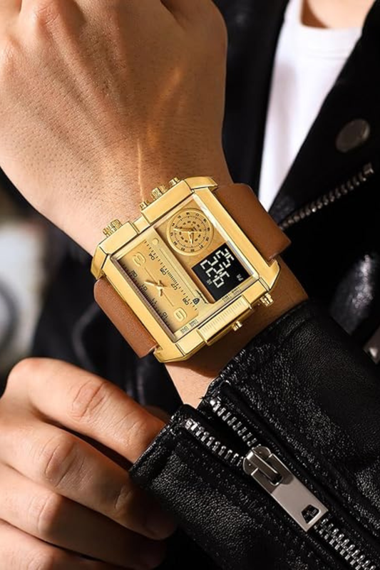 BESPAAR 38%Herenhorloge met dubbele display en lederen band